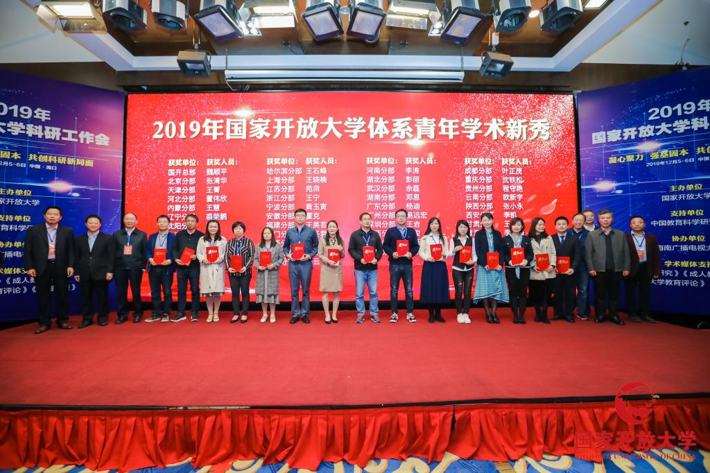 会议组织了多场高水平学术报告,讨论了《国家开放大学科研奖励办法》。会议对国家开放大学办学体系46名“科研贡献奖”获得者以及42名“青年学术新秀”获得者进行了表彰。沈光辉副校长荣获“科研贡献奖”称号、文经学院王美芸老师荣获“青年学术新秀”称号。沈光辉副校长作为“科研贡献奖”代表发言,陈兴炎书记为“科研贡献奖”获得者颁奖。
